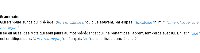 Signification du terme « enclitique », parution de 1932, dictionnaire académique Français.