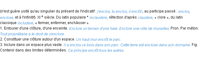 Définition « enclore » du dictionnaire académique Français, parution de l’année 1986.