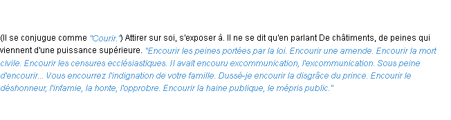 Signification éditée en 1986 pour le terme « encourir » par l’Académie Française.