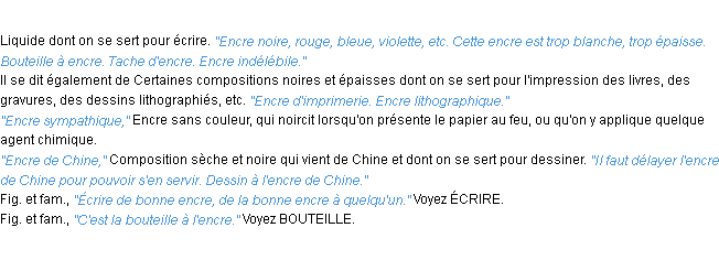 Signification du terme « encre », parution de 1986, dictionnaire académique Français.