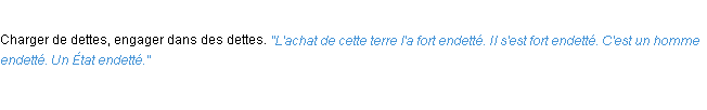 Ancienne signification développée en 1798 par l’académie Française (ACAD - 1798).Merci à Eloi et Nicolas pour la numérisation du mot endetter.