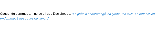 Ancienne signification parue en 1798 dans dictionnaire de l’Académie Française.Merci à émilien et Corinne pour la numérisation du mot endommager.