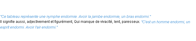 Définition « endormi » du dictionnaire académique Français, parution de l’année 1986.