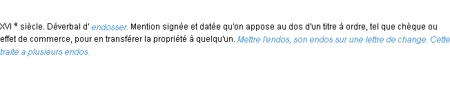 Signification du terme « endos », parution de 1986, dictionnaire académique Français.