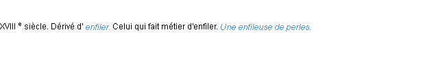 Signification du terme « enfileur », parution de 1876 (dictionnaire le Littré).
