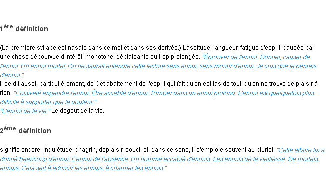 Définition « ennui » du dictionnaire académique Français, parution de l’année 1932.