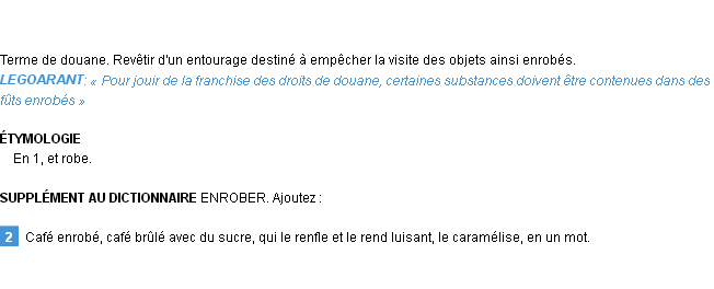 Signification du terme « enrober », parution de 1986, dictionnaire académique Français.