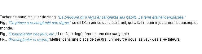 Ancienne définition « ensanglanter » du dictionnaire académique Français, parution de l’année 1835.