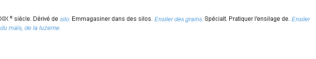 Signification du terme « ensiler », parution de 1932, dictionnaire académique Français.Merci à François et Philippe pour la numérisation du mot ensiler.
