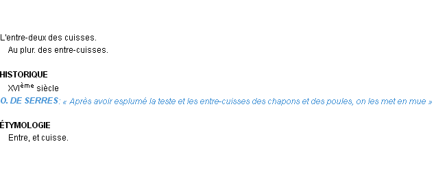 Définition du mot « entre-cuisse » par Emile Littré (édition de 1876).