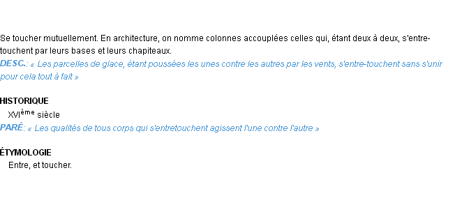 Définition du mot « entre-toucher » par Emile Littré (édition de 1876).