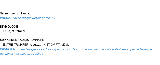 Définition développée dans dictionnaire d’Emile Littré (ancienne édition de 1876).Merci à Aurélie et édith pour la numérisation du mot entre-tromper.