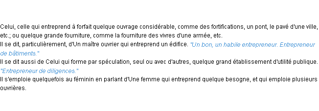 Signification du terme « entrepreneur », parution de 1932, dictionnaire académique Français.