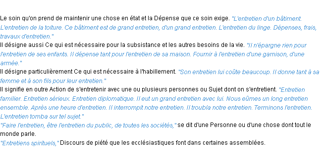 Définition de l’Académie Française (édition de 1986) pour le mot « entretien ».