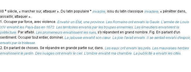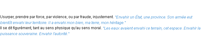 Ancienne définition académique pour le terme « envahir » (parue en 1835).