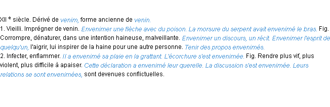 Ancienne définition développée dans dictionnaire académique, 1798.Merci à Theirn et étienne pour la numérisation du mot envenimer.