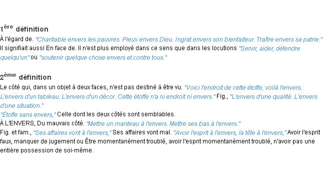 Définition « envers » du dictionnaire académique Français, parution de l’année 1932.