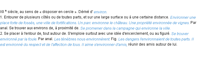 Signification éditée en 1986 pour le terme « environner » par l’Académie Française.