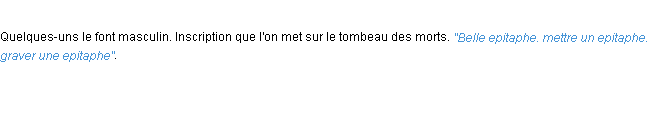 Ancienne signification éditée en 1694 pour le terme « epitaphe » par l’Académie Française.Merci à Charlot et Fifi pour la numérisation du mot epitaphe.