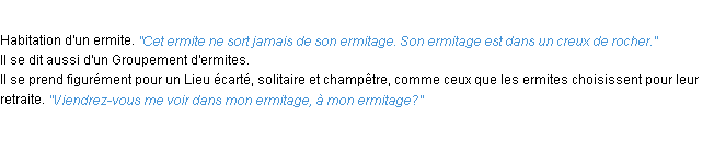 Définition du mot « ermitage » par l’Académie Française (édition de 1932).