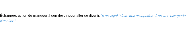 Définition du mot « escapade » par l’Académie Française (édition de 1986).