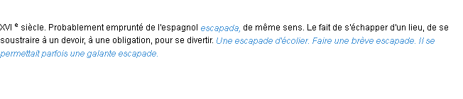 Signification éditée en 1932 pour le terme « escapade » par l’Académie Française.