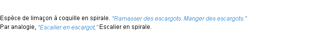 Ancienne définition de « escargot » de source académique (Académie Française, parution de 1835).
