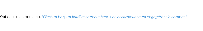 Ancienne définition développée dans dictionnaire académique, 17962.Merci à Gratien et Géraud pour la numérisation du mot escarmoucheur.