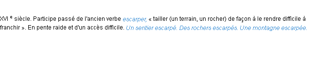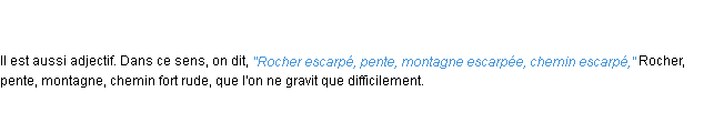 Ancienne signification développée en 1798 par l’académie Française (ACAD - 1798).Merci à Matthieu et Joelle pour la numérisation du mot escarpe.