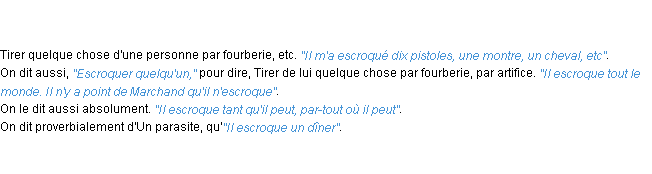 Signification du terme « escroquer », parution de 1986, dictionnaire académique Français.