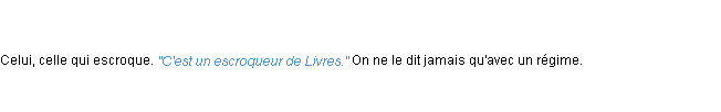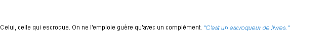 Signification du terme « escroqueur », parution de 1876 (dictionnaire le Littré).