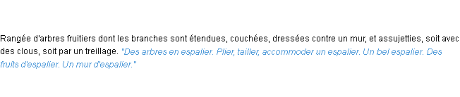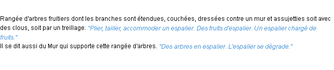 Définition de « espalier » de source académique (Académie Française, parution de 1986).