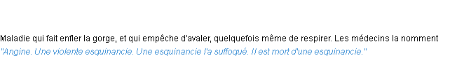 Définition académique pour le terme « esquinancie » (parue en 1986).