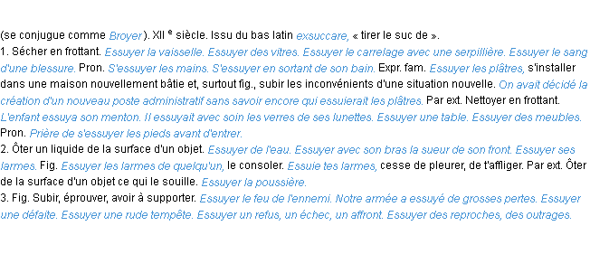 Définition « essuyer » du dictionnaire académique Français, parution de l’année 1932.
