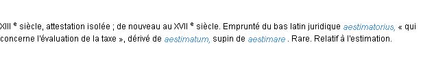 Signification du terme « estimatoire », parution de 1876 (dictionnaire le Littré).