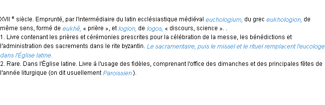 Signification éditée en 1986 pour le terme « eucologe » par l’Académie Française.