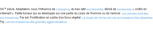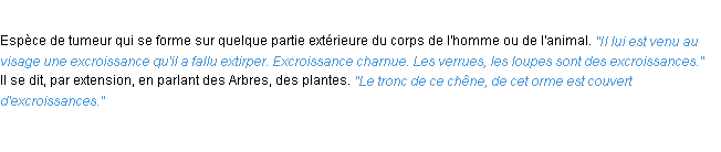 Ancienne signification éditée en 1835 pour le terme « excroissance » par l’Académie Française.