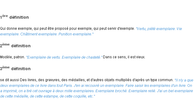 Définition de « exemplaire » de source académique (Académie Française, parution de 1986).