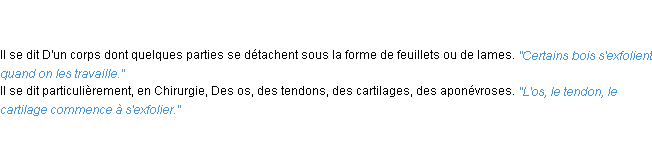 Ancienne définition académique pour le terme « exfolier » (parue en 1835).