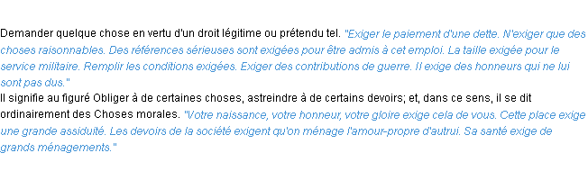 Définition « exiger » du dictionnaire académique Français, parution de l’année 1932.
