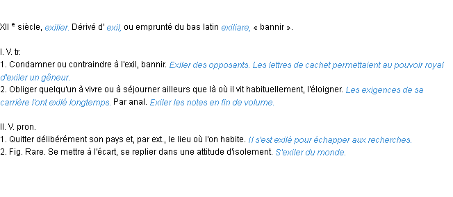 Signification du terme « exiler », parution de 1986, dictionnaire académique Français.