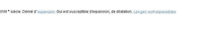 Ancienne signification parue en 1798 dans dictionnaire de l’Académie Française.Merci à Angelique et éloise pour la numérisation du mot expansible.