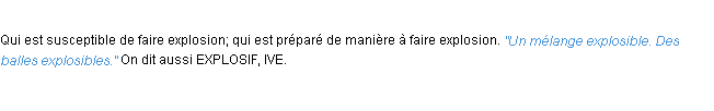 Signification du terme « explosible », parution de 1932, dictionnaire académique Français.