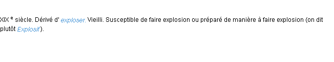 Signification du terme « explosible », parution de 1876 (dictionnaire le Littré).Merci à Célestin et Ozanne pour la numérisation du mot explosible.