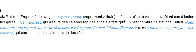 Définition développée dans dictionnaire d’Emile Littré (ancienne édition de 1876).Merci à Telesphore et Rémi pour la numérisation du mot express.
