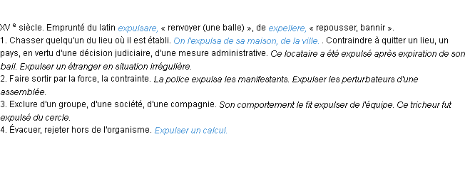 Signification éditée en 1932 pour le terme « expulser » par l’Académie Française.