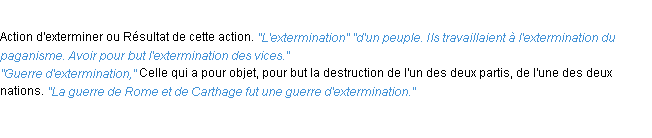 Ancienne définition de « extermination » de source académique (Académie Française, parution de 1835).