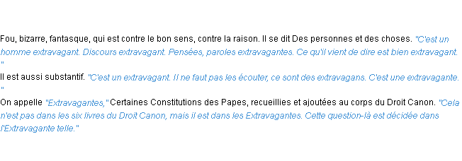 Ancienne définition « extravagant » du dictionnaire académique Français, parution de l’année 1798.Merci à Jeannette et Odile pour la numérisation du mot extravagant.