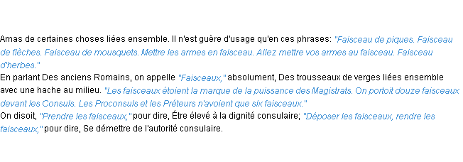 Ancienne définition de l’Académie Française (édition de 1835) pour le mot « faisceau ».