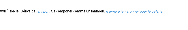 Définition du mot « fanfaronner » par l’équipe de la-definition.fr (édition de 2011).